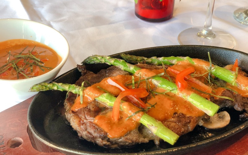 Welcome! 🔥🔥 April Hot Summer Season with the tendered Rib-Eye 12 oz. perfectly grilled, along with Asparagus glazed with authentic “Panang Curry” sauce. 🥇